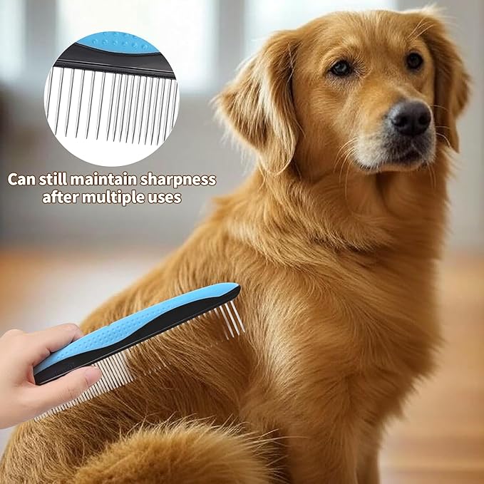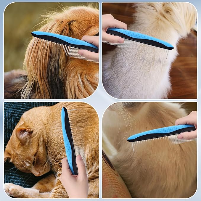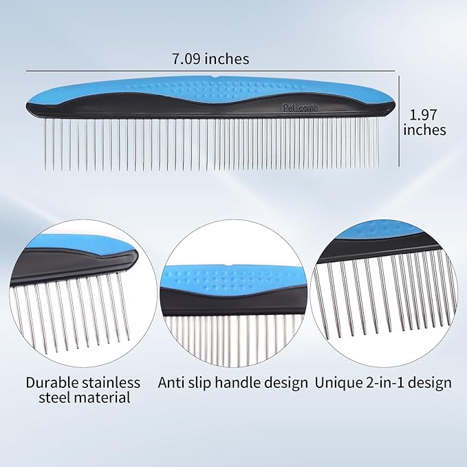 - Versatile 2-in-1 Design: Wide teeth untangle knots in thick fur, narrow teeth refine finer hair, suitable for long and short-haired dogs and cats, meeting diverse needs.