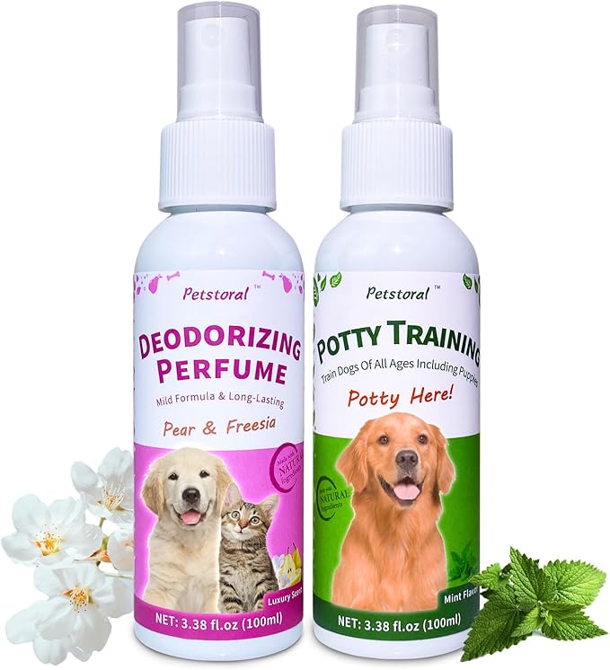 Potty Training & Deodorizing Perfume Spray - Dog Training & Behavior Aids | Stop Dog Marking, Puppy & Dog Pee and Poop Training Spray Kit (3.38 Fl Oz/100ml)