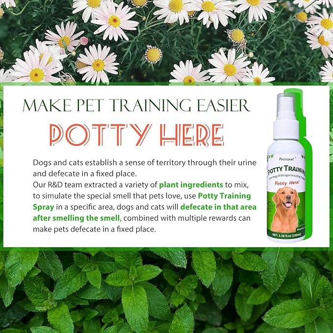 - Effective Potty Training Solution - The Dog Potty Training Spray mimics the natural scent of grass, helping dogs develop proper potty habits. Its plant-based formula replicates the scent of grass and dog urine, guiding your dog to use the designated area consistently.