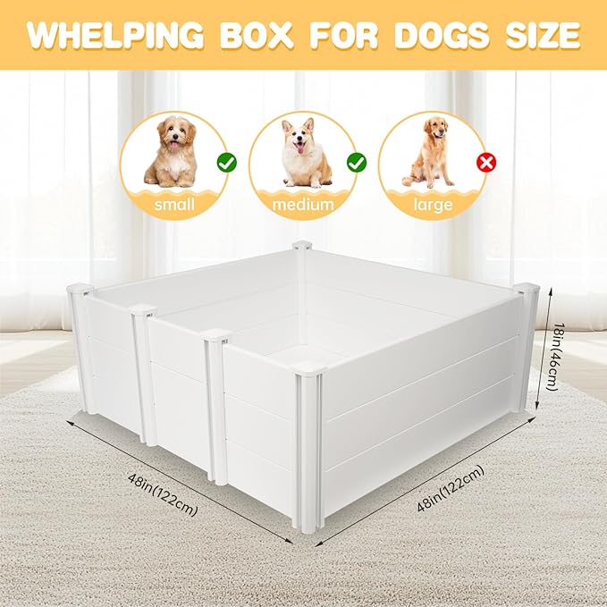 - 【SAFE AND COMFORTABLE】The dog whelping box creates a comfortable whelping room environment, allowing puppies to grow in a safe environment.