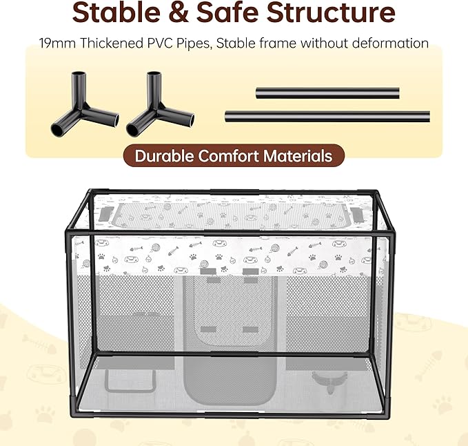 - Easy Folding and Assembly : Kitten playpen come with step-by-step instructions and video tutorials that take only 30 seconds to install. Playpen for cats also folds flat when not in use for easy carrying and storing
