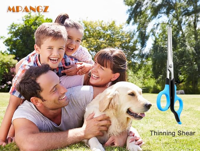 - 【Precision Dog Scissors Set】Our dog grooming scissors are crafted with high-quality stainless steel blades. The dog cutting shears are sharper and effective, making it easy to cut through your dog's tough tangles. The thinning scissors are specifically designed to thin thick furry hair, ensuring your dogs will love their haircut.