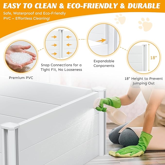 - Durable & Waterproof PVC Construction: Constructed from high-quality, pet-safe PVC material, this Whelping Box is not only waterproof and rustproof but also incredibly durable. The stable structure ensures longevity, providing your beloved pets with a reliable sanctuary and giving you peace of mind
