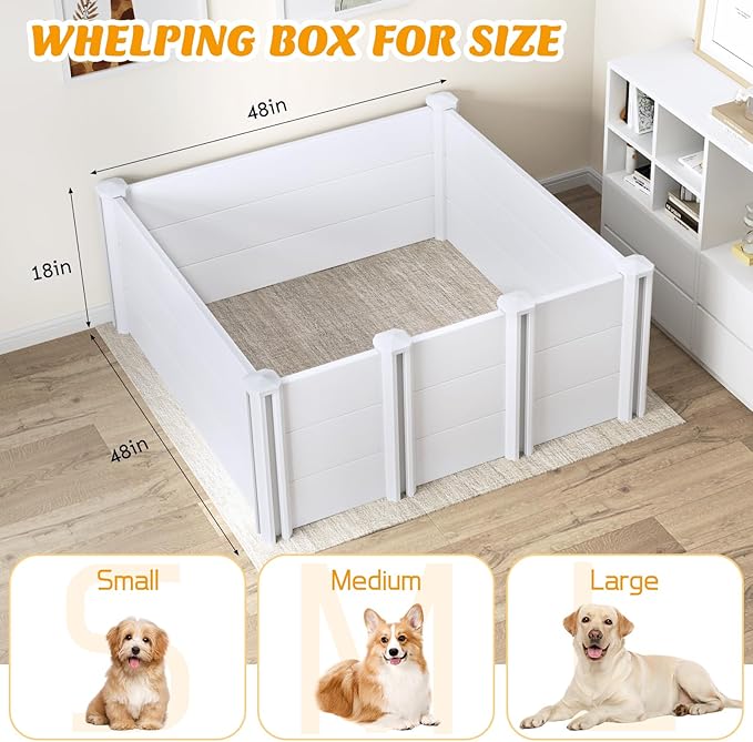 - Multifunctional Whelping Box for Dogs: Provide a safe and comfortable space for your dogs during whelping or as a playful area. This Whelping Box is designed for large, medium, and small breed dogs. Its versatile design allows it to be used both indoors and outdoors, and it can even double as a raised garden bed