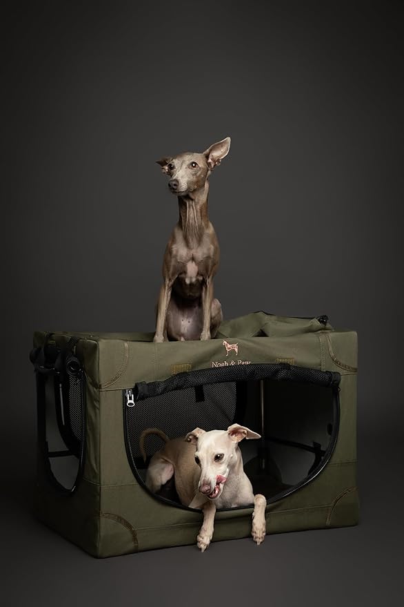 Noah & Paw Collapsible Dog Crate 26 Inch, Small Dog Crate for Small Medium Breeds, Travel Kennel for Car, Including Pet Mat for Pet Cage, 2 Storage Pockets, Handbag, 10mm Locking Zipper 26 * 17 * 17