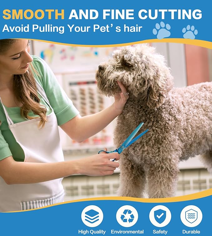 - Features: This pet scissors with ergonomic handles, suitable for most people. Finely polished, frosted surface, fine metal texture. precise adjustable screws effectively prevents screws from loosening due to prolonged use