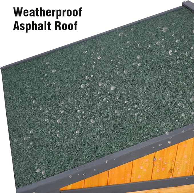 - 【Built-in Porch Area】--This dog house outdoor includes a roomy front deck, offering your pet a comfortable area to lounge, sunbathe, and observe their surroundings. It’s designed to provide relaxation while allowing them to enjoy fresh air and security, indoors or outdoors. Your pet will love the fresh air and extra space, making this the perfect outdoor retreat.