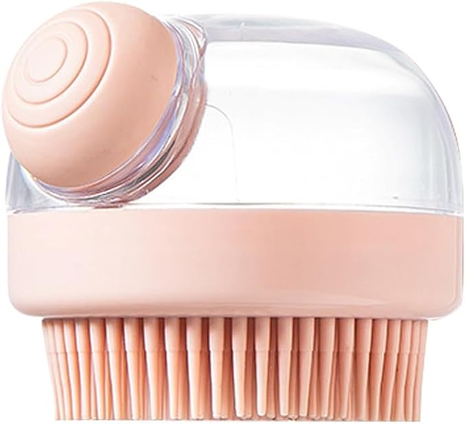 Pet Bathing Brush with Soap Dispenser, Ergonomic 4D Grip, One-Click Liquid Dispensing (Rose Pink)