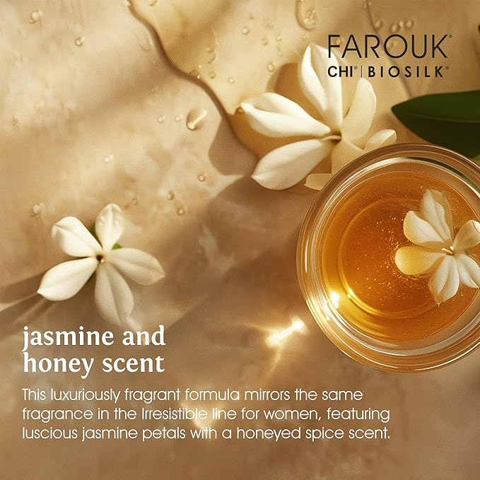 - Jasmine and Honey Scent – This luxuriously fragrant formula mirrors the same fragrance in the Irresistible line for women, featuring luscious jasmine petals with a honeyed spice scent