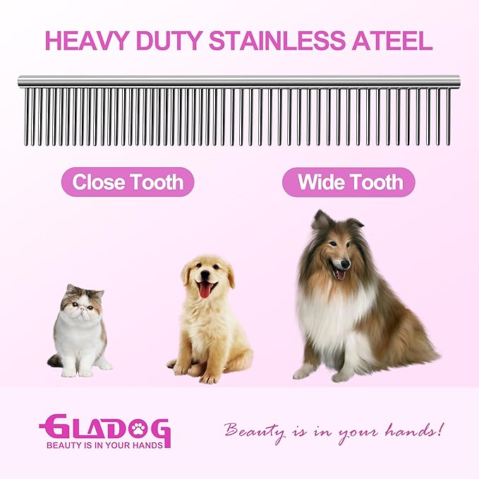 GLADOG Professional 5 in 1 Dog Grooming Scissors Set with Safety Round Tips, Sharp and Heavy-duty Pet Grooming Shears for Cats (Red)