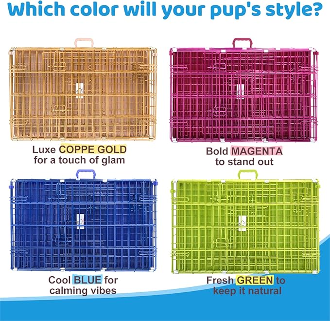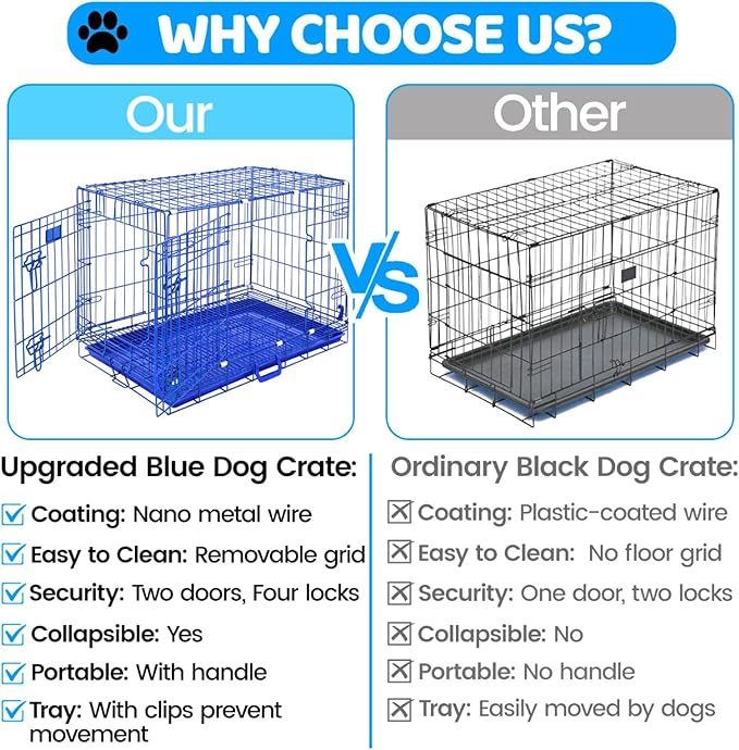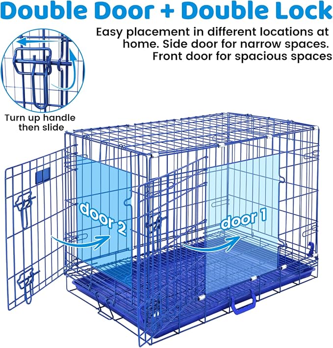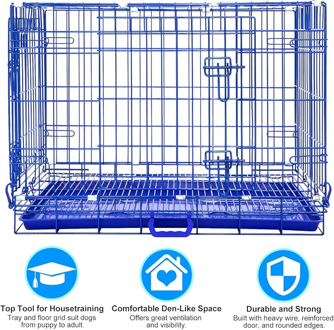 - Durable Blue Dog Cage: Made of thickened metal wire with a blue nano coating, this dog cages for medium dogs extends its life and provides resistance against rust, fading, peeling, and scratches. Not easy to bend or bite. The comfortable, den-like space provides enough ventilation and visibility. Don't let your dog feel cooped up. Reduces cage anxiety and chewing in your dog