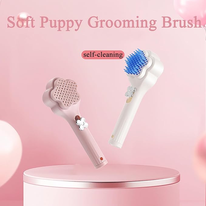 Self-Cleaning Soft Fur Brush for puppy – Scalable Gentle Grooming Brush Small Dogs Comb for Chihuahuas, Teddy Dogs, Yorkies, Maltipoos, Shih Tzus (Pink)