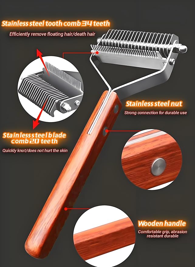 - Comfortable & Anti-Slip Wooden Handle:Ergonomically designed wooden handle provides a comfortable, non-slip grip, ensuring effortless grooming even during extended use.