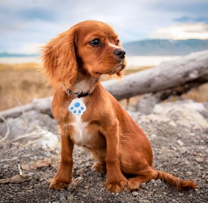 - DESIGN: Paw print-shaped dog collar tracker with multi-colored options for easy visibility and style