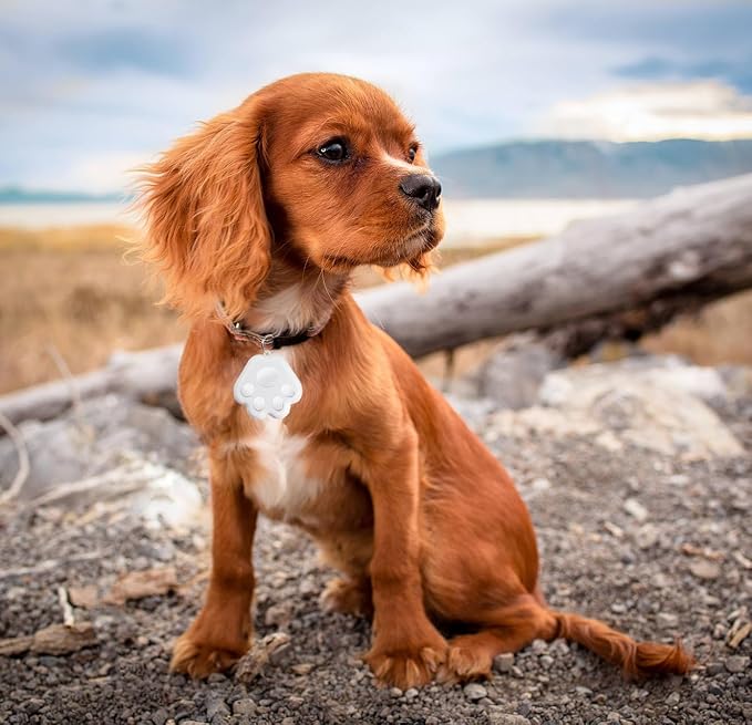 - DESIGN: Paw print-shaped dog collar tracker with multi-colored options for easy visibility and style