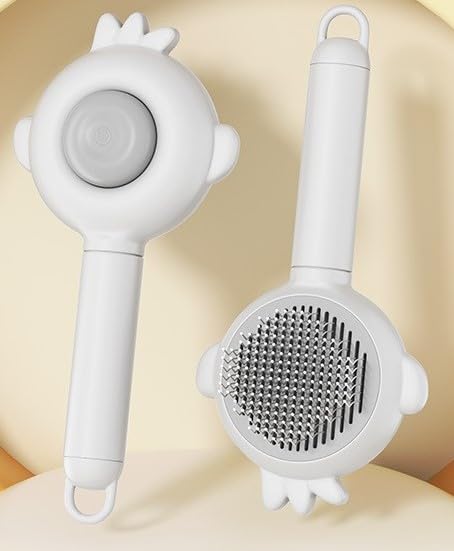 - UNIVERSAL DESIGN: One-click pet grooming comb suitable for both cats and dogs, featuring gentle massage beads for effective hair removal
