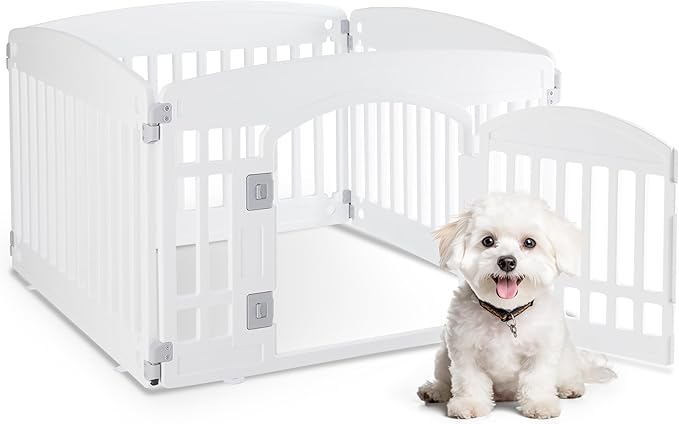 HealSmart 4 Panel 24" Plastic Dog Playpen, Folding & Portable Pet Playpen for Indoor & Outdoor Use, Safe & Secure Fence, Ideal for Small to Medium Dogs, White