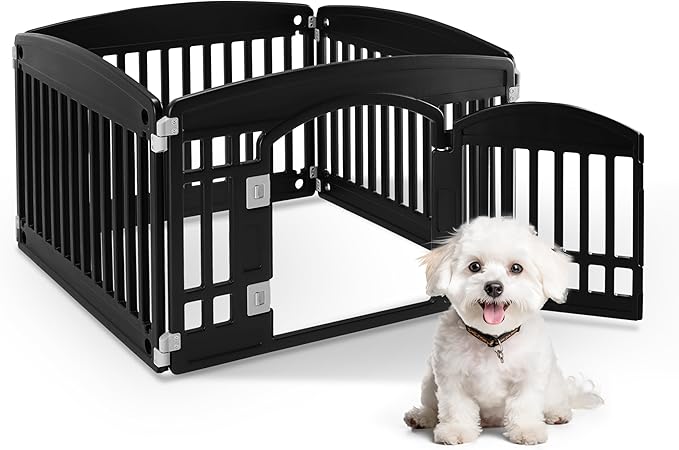 HealSmart 4 Panel 24" Plastic Dog Playpen, Folding & Portable Pet Playpen for Indoor & Outdoor Use, Safe & Secure Fence, Ideal for Small to Medium Dogs, Black