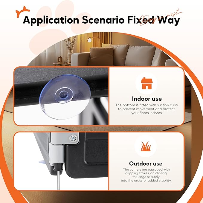 - Stability and Indoor Safety: Dog playpen crafted with rounded corners and a sturdy structure, equipped with two suction cups per panel, the playpen firmly grips smooth indoor surfaces, preventing any movement or wobbling, ensuring your pet's safety