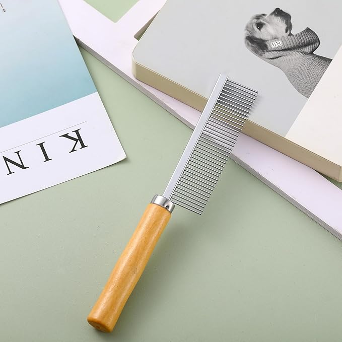 - Stainless Steel Teeth and Wood Comfort: crafted with stainless steel teeth, the teeth are rounded and will not hurt your pet; The comb effectively solves the problem of hair tangling, straightening out messy fur, and removing annoying knots; The wooden handle offers slip free control, making the task smooth and easy