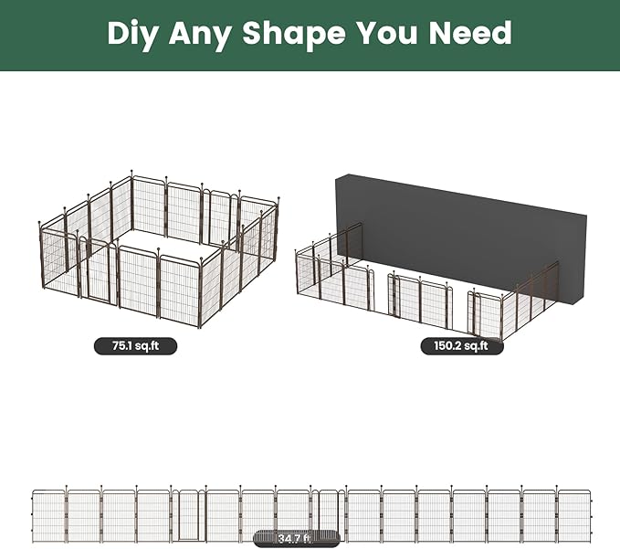 - Easy Assemble & DIY Shapes: The panels could be assembled in just a few minutes without toolsdue to the rod-connected design. You could DIY the dog pen to any shape you need like square, rectangle, round, etc. Our pet play pen could be disassembled into a flat and compact size for space saving and easy carrying, perfect for travel, RV camping or play in the yard.