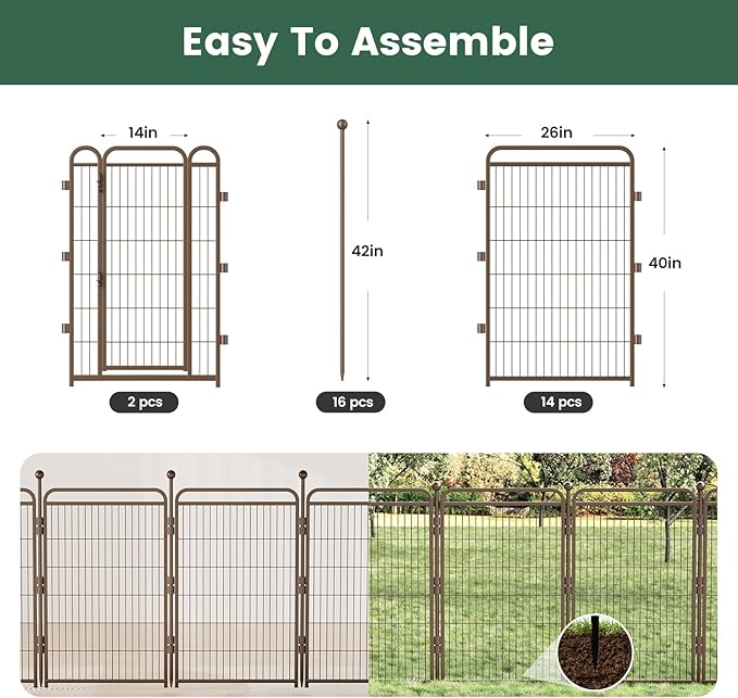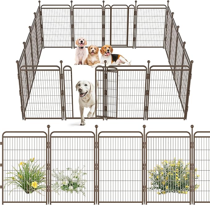 Gardner Pet Dog Playpens, 40" H 16 Panels Dog Pen Outdoor/Indoor Dog Fence Exercise Pen for Small/Medium/Large Dogs, Foldable Pet Play Yard Gate with Gravity Automatic Lock, Pet Playpen, Brown