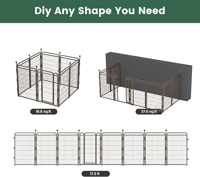 - Easy Assemble & DIY Shapes: The panels could be assembled in just a few minutes without toolsdue to the rod-connected design. You could DIY the dog pen to any shape you need like square, rectangle, round, etc. Our pet play pen could be disassembled into a flat and compact size for space saving and easy carrying, perfect for travel, RV camping or play in the yard.