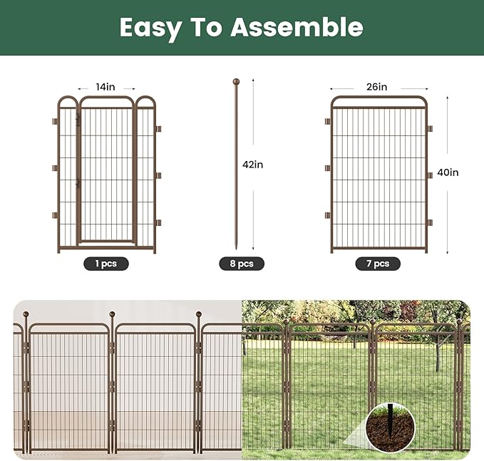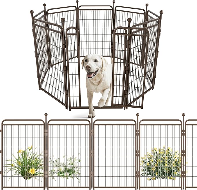 Gardner Pet Dog Playpens, 40" H 8 Panels Dog Pen Outdoor/Indoor Dog Fence Exercise Pen for Small/Medium/Large Dogs, Foldable Pet Play Yard Gate with Gravity Automatic Lock, Pet Playpen, Brown