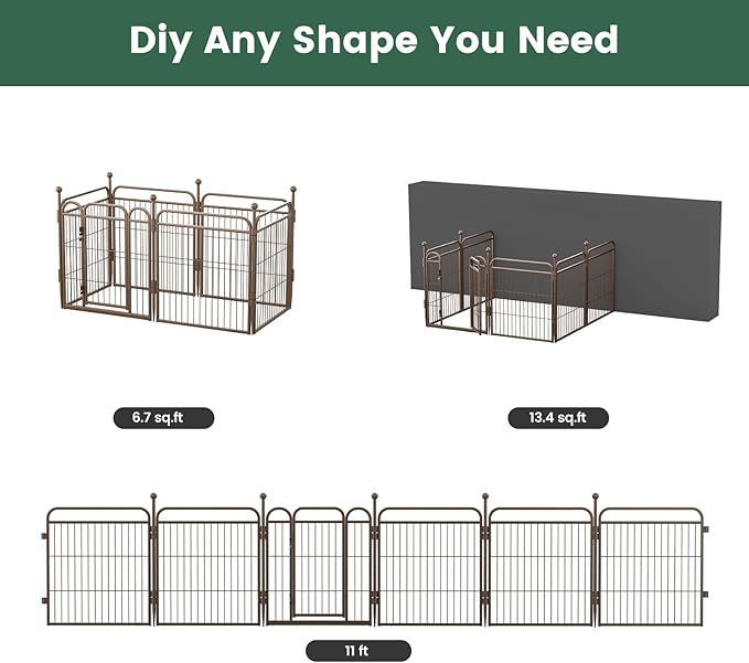 - Easy Assemble & DIY Shapes: The panels could be assembled in just a few minutes without toolsdue to the rod-connected design. You could DIY the dog pen to any shape you need like square, rectangle, round, etc. Our pet play pen could be disassembled into a flat and compact size for space saving and easy carrying, perfect for travel, RV camping or play in the yard.