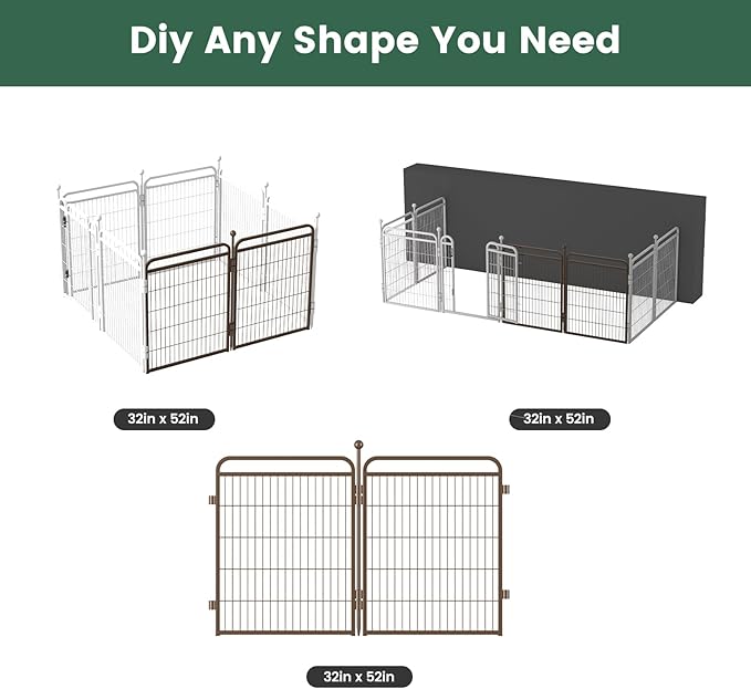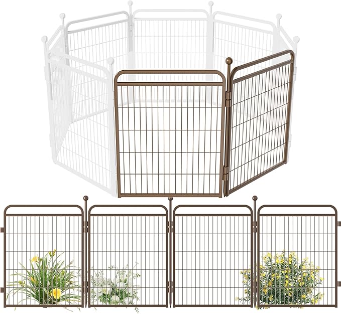 Gardner Pet Dog Playpens, 32" H 2 Add-on Panels for Small/Medium/Large Dogs, Foldable Pet Play Yard Gate Extensions, Pet Playpen, Anti-Rust, Quick Install, Brown