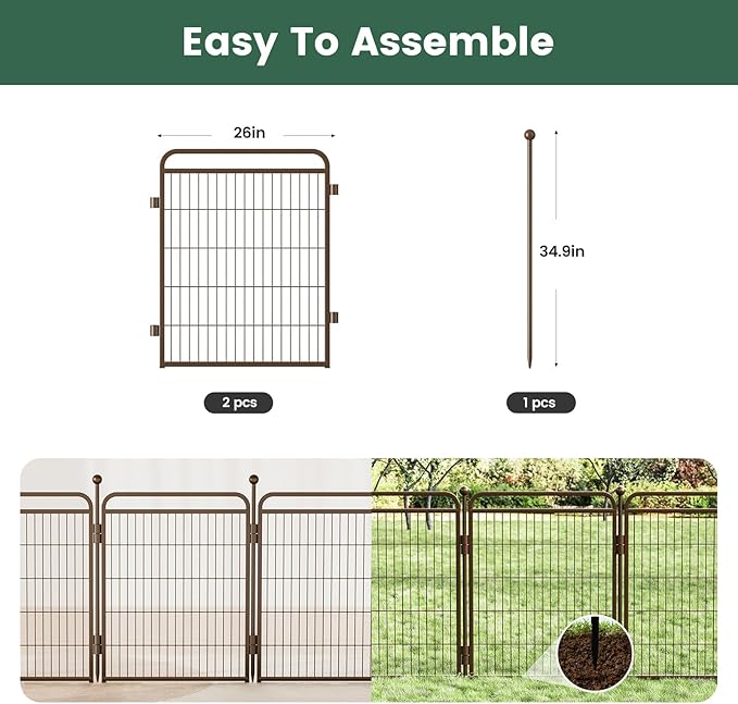 - Easy Assemble & DIY Shapes: The panels could be assembled in just a few minutes without toolsdue to the rod-connected design. You could DIY the dog pen to any shape you need like square, rectangle, round, etc. Our pet play pen could be disassembled into a flat and compact size for space saving and easy carrying, perfect for travel, RV camping or play in the yard.