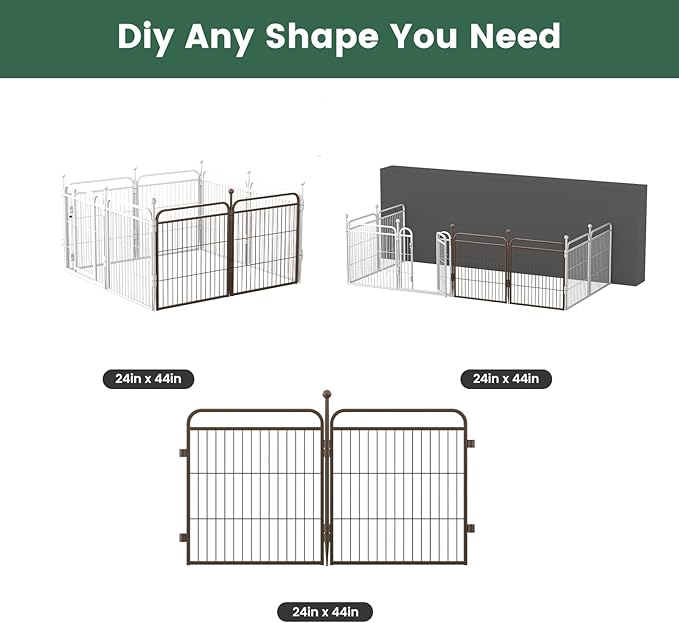 - Easy Assemble & DIY Shapes: The panels could be assembled in just a few minutes without toolsdue to the rod-connected design. You could DIY the dog pen to any shape you need like square, rectangle, round, etc. Our pet play pen could be disassembled into a flat and compact size for space saving and easy carrying, perfect for travel, RV camping or play in the yard.