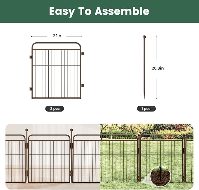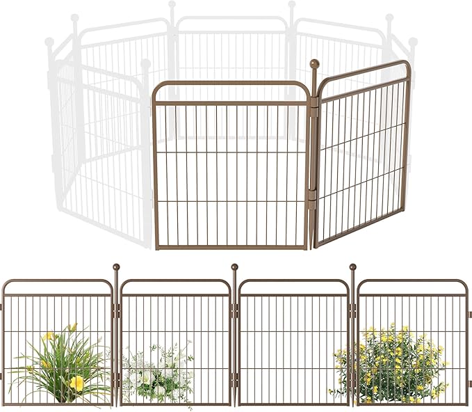 Gardner Pet Dog Playpens, 24" H 2 Add-on Panels for Small/Medium Dogs, Foldable Pet Play Yard Gate Extensions, Pet Playpen, Anti-Rust, Quick Install, Brown