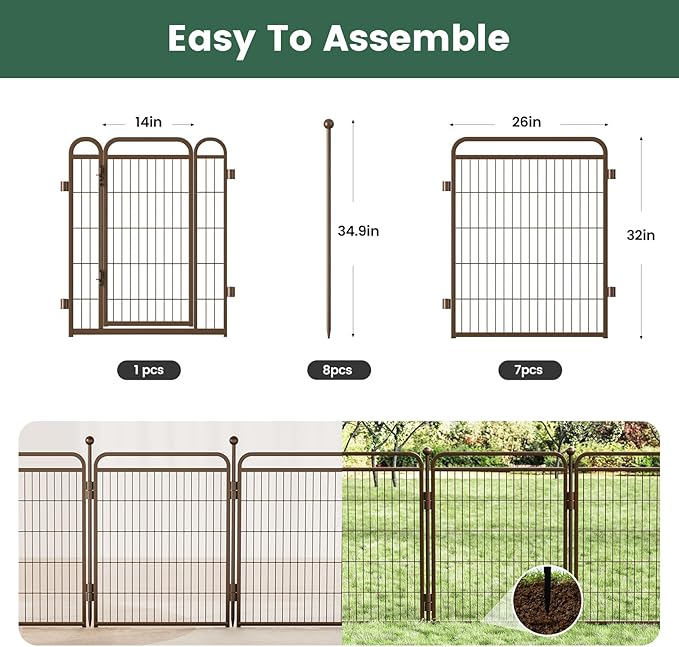 Gardner Pet Dog Playpens, 32" H 8 Panels Dog Pen Outdoor/Indoor Dog Fence Exercise Pen for Small/Medium/Large Dogs, Foldable Pet Play Yard Gate with Gravity Automatic Lock, Pet Playpen, Brown