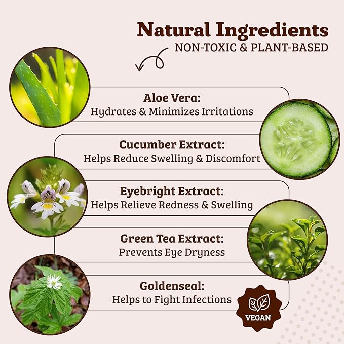 - THE POWER OF NATURAL INGREDIENTS - Dive into the goodness of Witch Hazel, Aloe Vera, and Eyebright, natural warriors against eye irritation, tear stains, and crusty build-up. These herbal ingredients ensure gentle yet effective cleansing, making these pet eye wipes for dogs a safe choice for your furry friend's sensitive eyes.