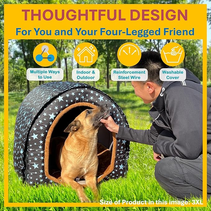 2 in 1 Extra Large Pet Winter House Convertible to Bed with Warm Cushion Mat, 2 Way Indoor Outdoor Warm Dog House Bed, Removable Washable Cover (XL Starry Sky)
