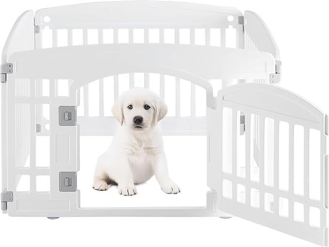 Simple Deluxe 4 Panel Plastic Dog Playpen, Safe and Secure, Folding and Portable, Puppy Fence with Door, ffor Dogs and Suppies, 24", White