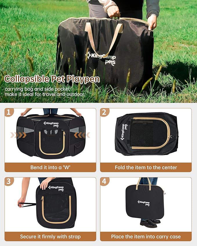 - QUICK SETUP, EASY CARRY: With a pop-up frame and built-in elastic straps, our portable pet playpen sets up or folds down in minutes without tools. Lightweight and complete with a zippered carry bag, it's perfect for you to bring the pop up playpen indoors and outdoors.