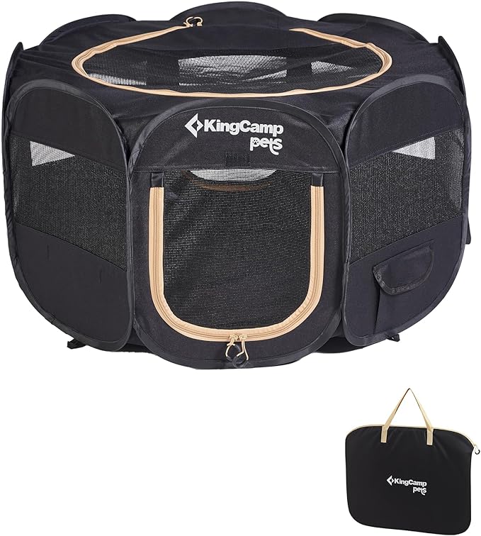KingCamp Dog Playpen, Portable Foldable Cat Kitten Puppy Tent Crates 29"/36"/50" Pop Up Pet Playpen with Zippered Bottom & Cover for Indoor Outdoor Use (X-Large, Jet Black)