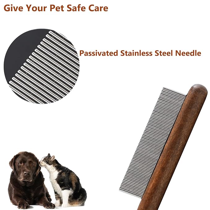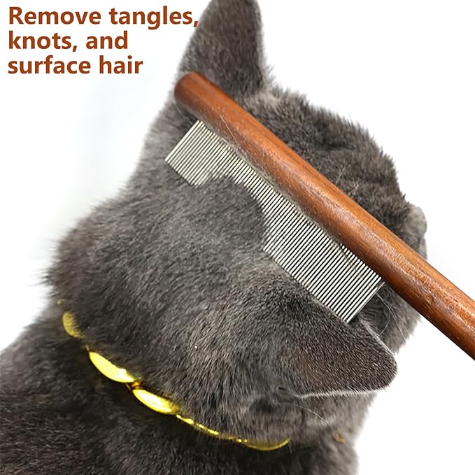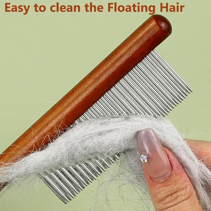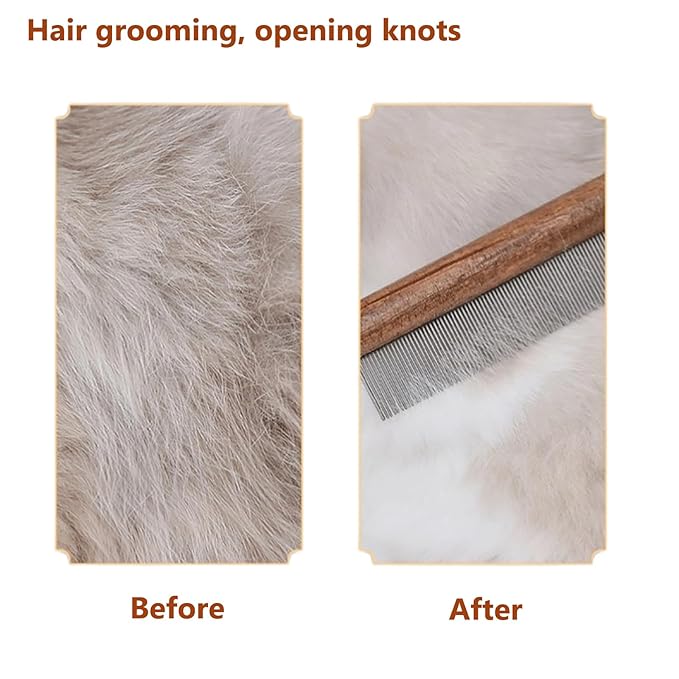 - Multifunctional Pet Hair Comb: Solve tear stains, mats, and tangles effortlessly with our flea removal comb. Wooden handle ergonomic design pet combs for convenience