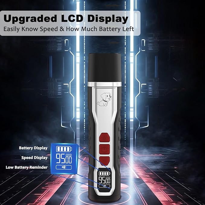 - 【LED Display Screen】The LED display screen helps you monitor the battery level and the speed setting, which frees you from power anxiety.When the remaining power is low, it will remind the dog/cat owner to charge in time to avoid sudden power outage when trimming nails