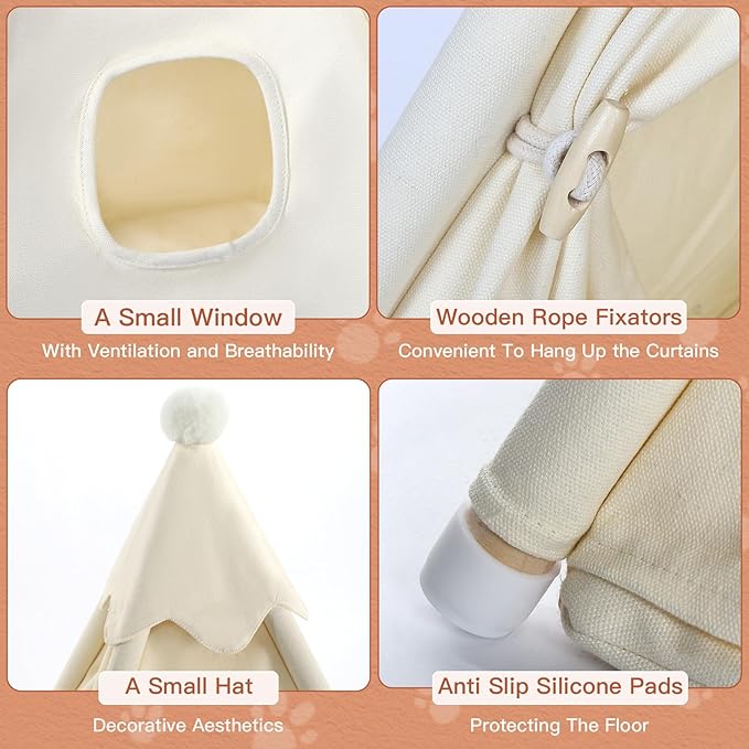 - Cotton Canvas and Pine Poles: The small dog house, made of high-quality cotton canvas and pine poles, 100% safe materials, is completely detachable and machine-washable.