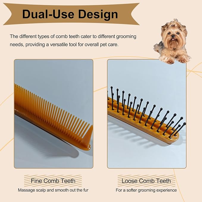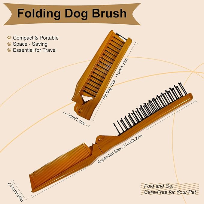 - Dual-Use Design: This foldable grooming comb features two different types of comb teeth on each end - one end with dense teeth for detangling and massaging, and the other end with sparse teeth for a softer grooming experience. This versatility allows you to use the comb for various grooming tasks, from brushing out tangles to massaging your pet's skin during bath time.