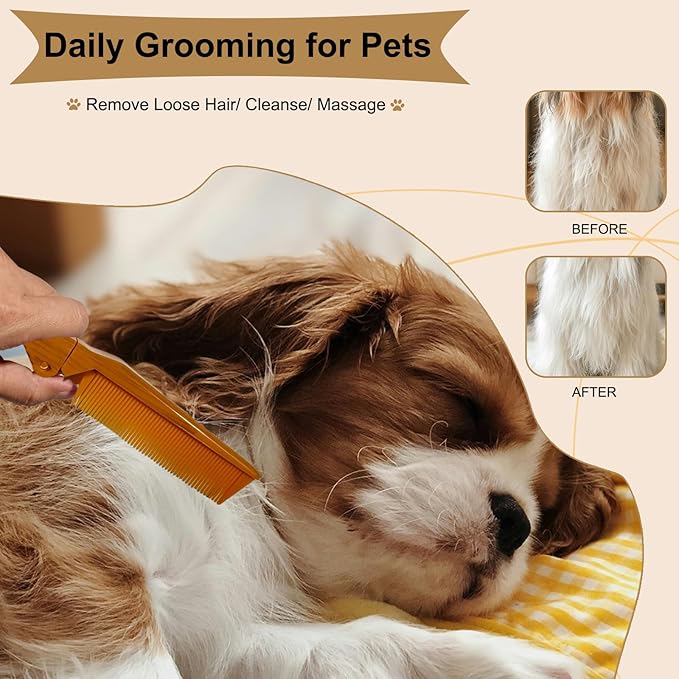 - Durable Material: Crafted from durable plastic , this grooming comb is sturdy and long-lasting.the plastic comb teeth are gentle on your pet's skin, ensuring a safe and effective grooming experience.