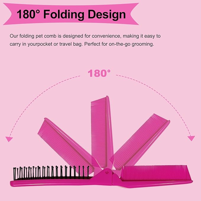 - Convenient Folding Mechanism: The foldable design of this grooming comb makes it easy to store and carry around. Simply fold the comb in half to protect the teeth and handle, making it a compact and portable grooming tool for on-the-go use or travel.