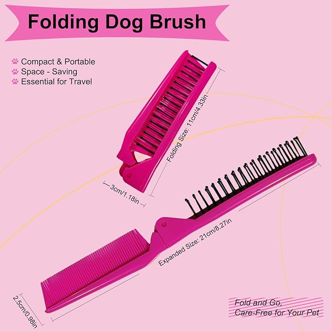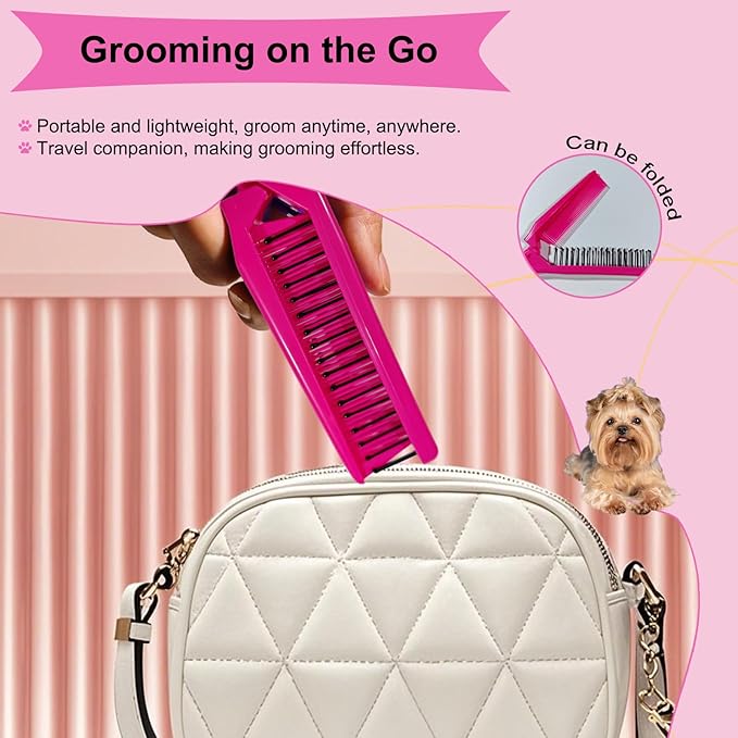 Folding Small Dog Grooming Brush - Perfect for Shih Tzus, Yorkies, and Maltipoos - Ideal Puppy Hair Brushes for Maltese and Small Breeds (Rose Red)