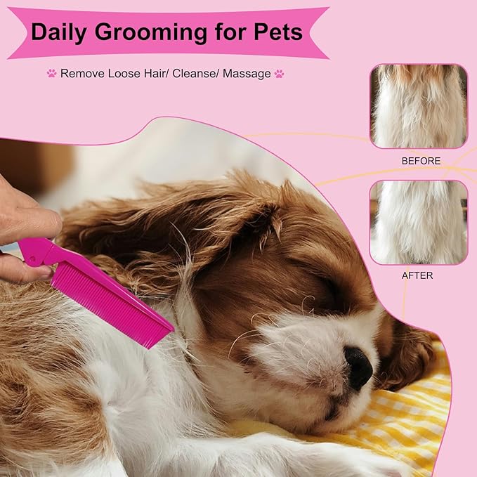 - Dual-Use Design: This foldable grooming comb features two different types of comb teeth on each end - one end with dense teeth for detangling and massaging, and the other end with sparse teeth for a softer grooming experience. This versatility allows you to use the comb for various grooming tasks, from brushing out tangles to massaging your pet's skin during bath time.