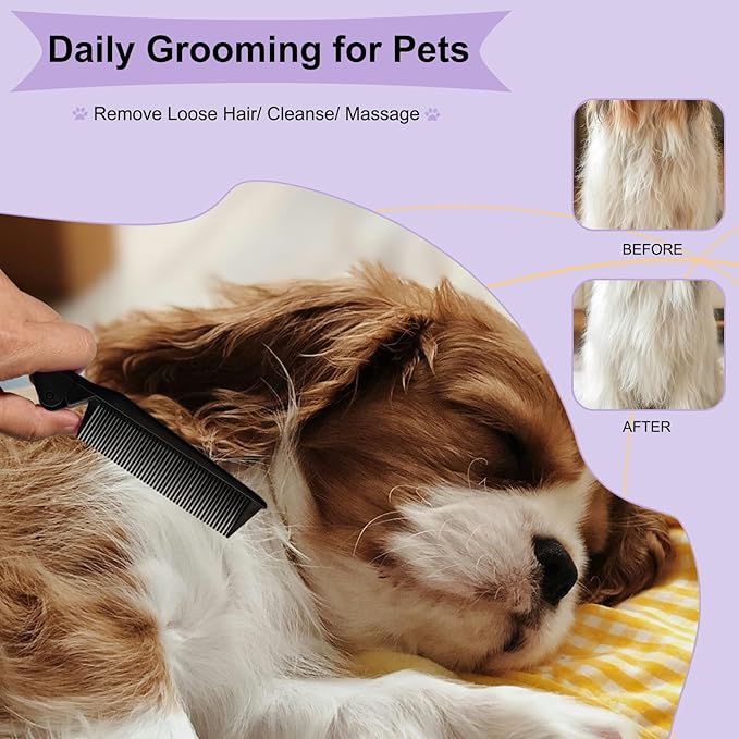 - Dual-Use Design: This foldable grooming comb features two different types of comb teeth on each end - one end with dense teeth for detangling and massaging, and the other end with sparse teeth for a softer grooming experience. This versatility allows you to use the comb for various grooming tasks, from brushing out tangles to massaging your pet's skin during bath time.