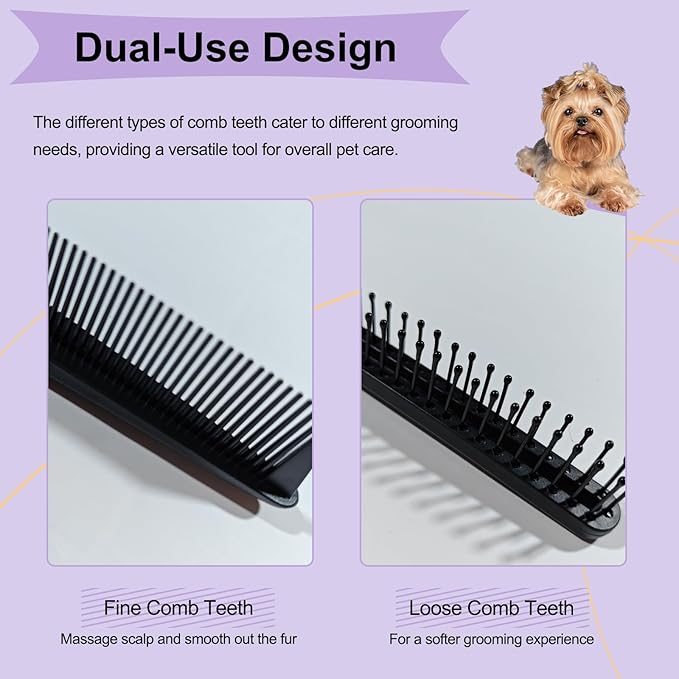 - Durable Material: Crafted from durable plastic , this grooming comb is sturdy and long-lasting.the plastic comb teeth are gentle on your pet's skin, ensuring a safe and effective grooming experience.