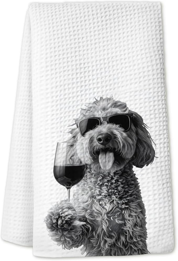 Wine Cavapoo Kitchen Towels, Cavapoo Gifts for Women Dish Towels for Kitchen Drying, Dog Lover Mom Gifts for Women Hand Towels for Bathroom, 16x24 Inch